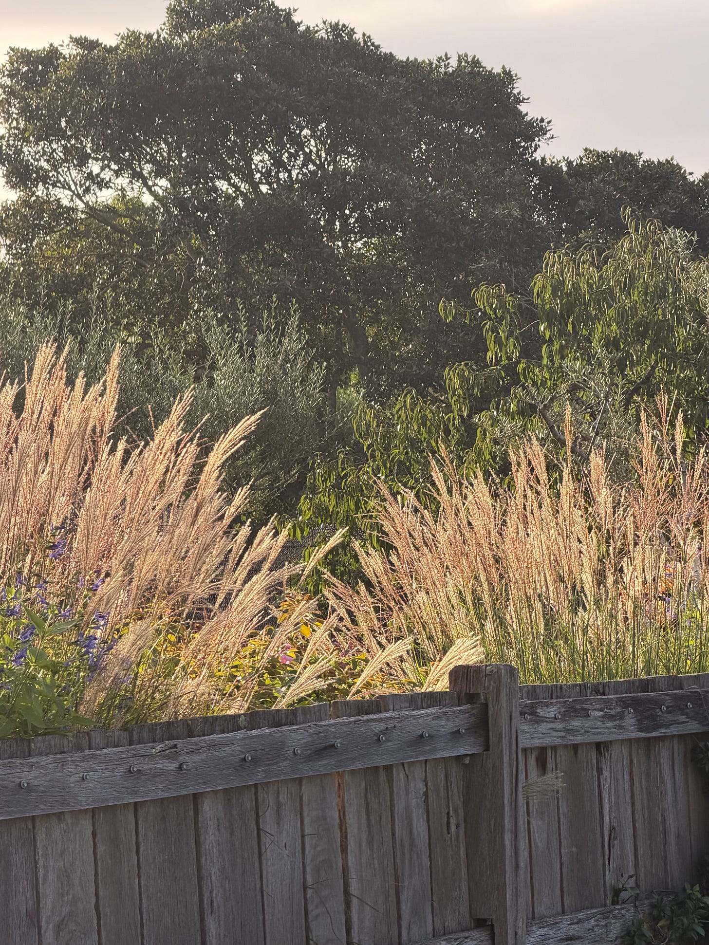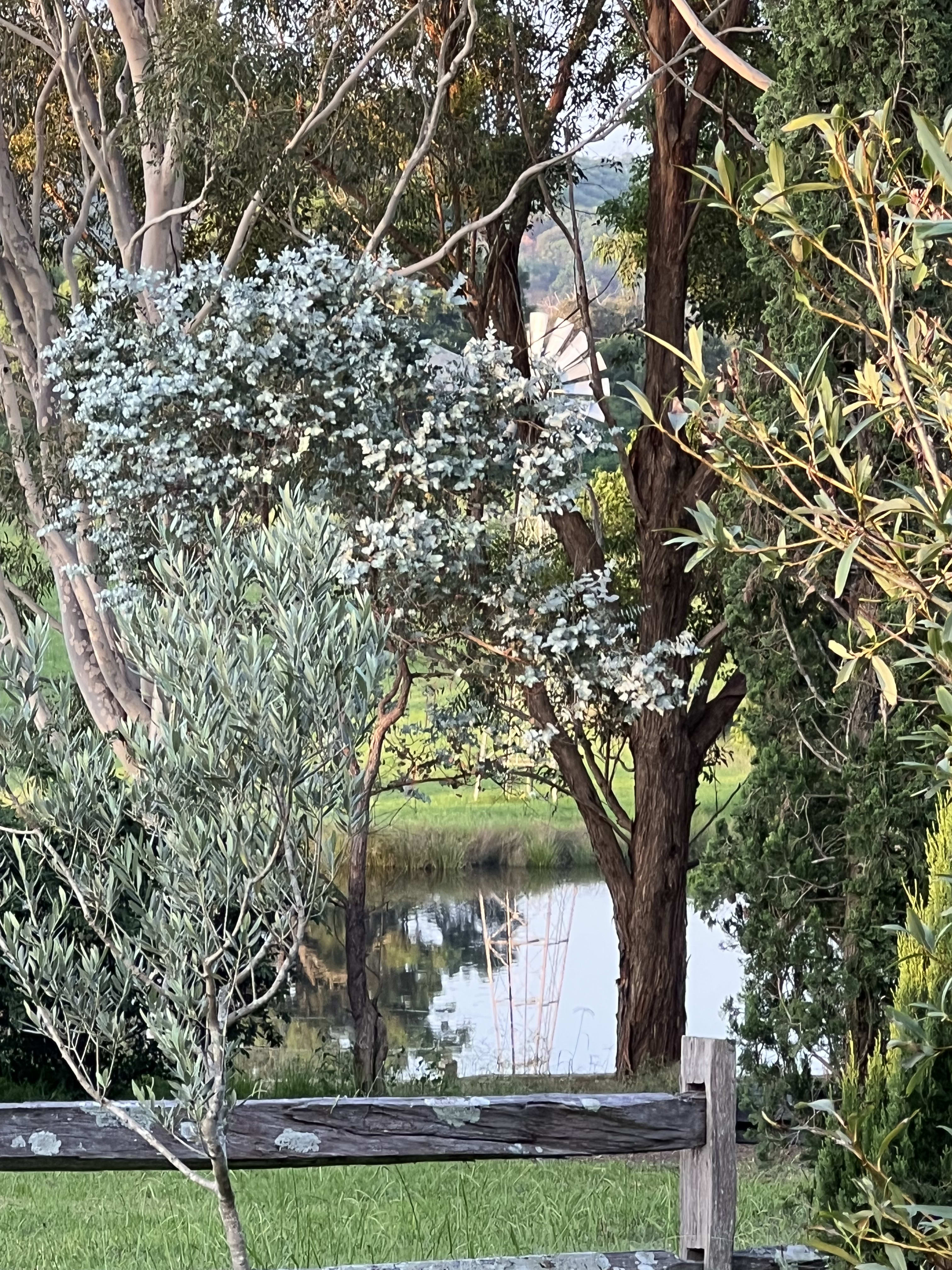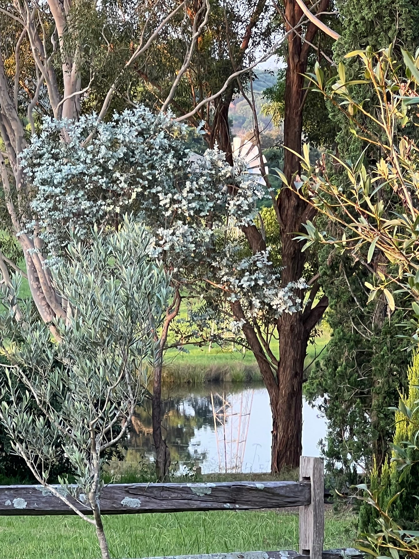 And the shimmering grasses and olive leaves, backed by the immensity of the Port Jackson Fig. I sent Larry a message - “do you remember when we stood on this spot, feeling utterly exposed, with a naked view all the way to the house on the hill way over in the distance?” “I do” he replied…