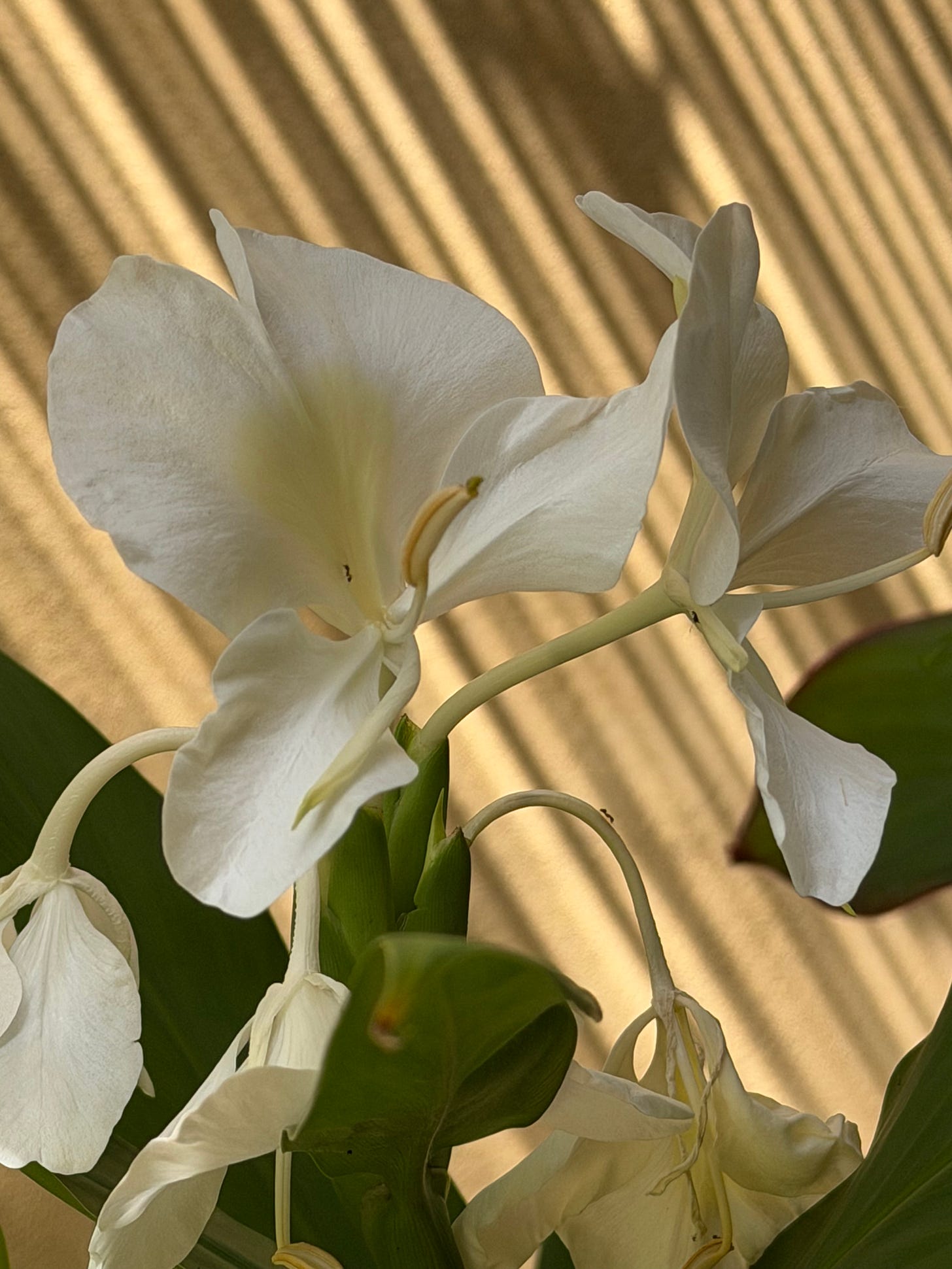 Perfumes and aromas: rose, frangipani, ginger, fig leaf, lavender (a new flush), gardenia, port wine magnolia, Osmanthus fragrans, night-scented Jessamine, Chinese star jasmine…and this week the first delicate flowers of Hedychium coronarium the white-flowering ginger and surely…this must be the perfume that fills heaven…?