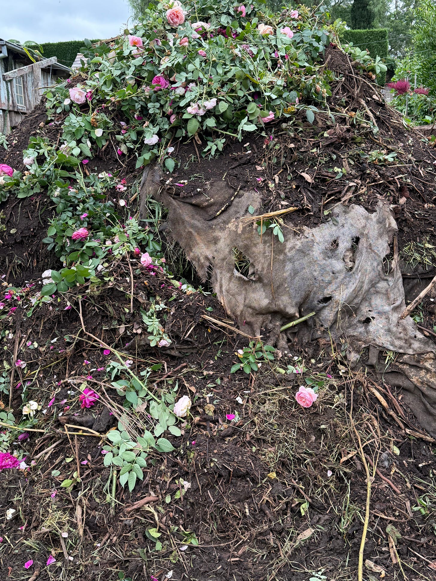 With a good job done, and everything neat and tidy down in the compost bays…I went off to deadhead the roses. It’s long been a Sunday afternoon rose-season activity, that I thoroughly enjoy. When the girls were little, they’d follow me with my barrow around the garden, picking off all the petals and throwing them in the air like confetti; and what was left, has always been the final flourish to finish off a Sunday compost heap…whether it’s been turned, or not!