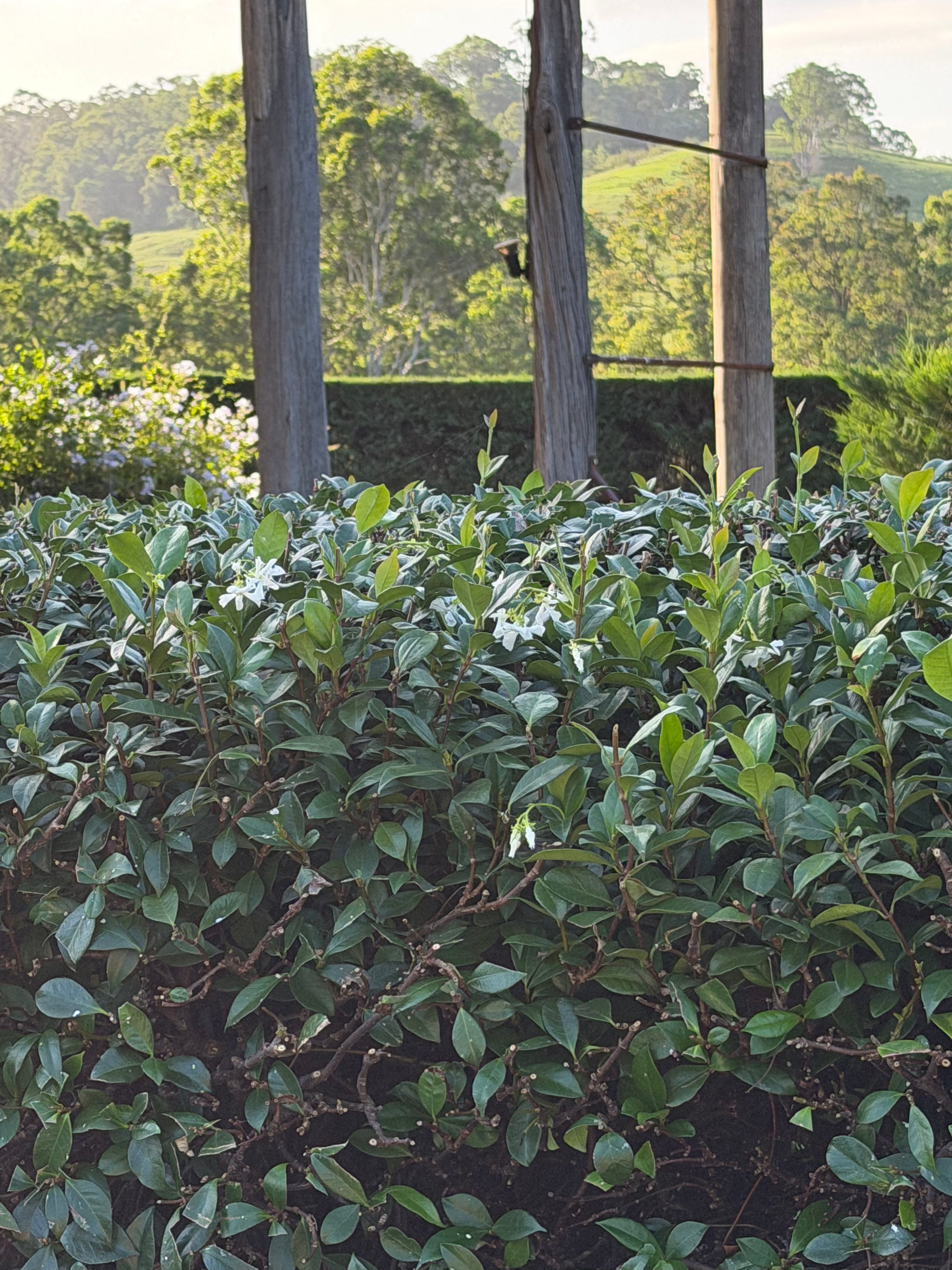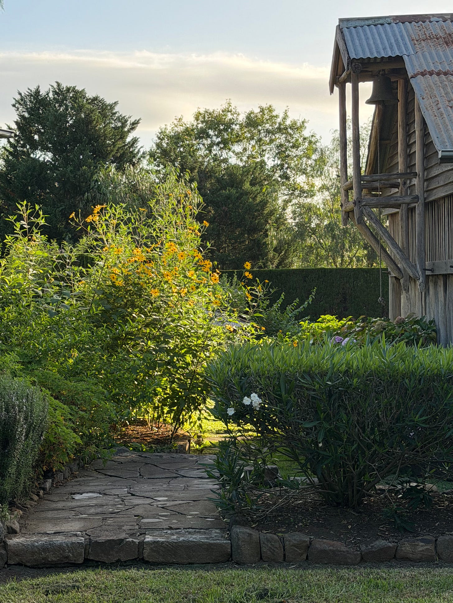 Revelled in the golden light falling on Big Hill, glimpsed through the tall poles of the Hay Shed…