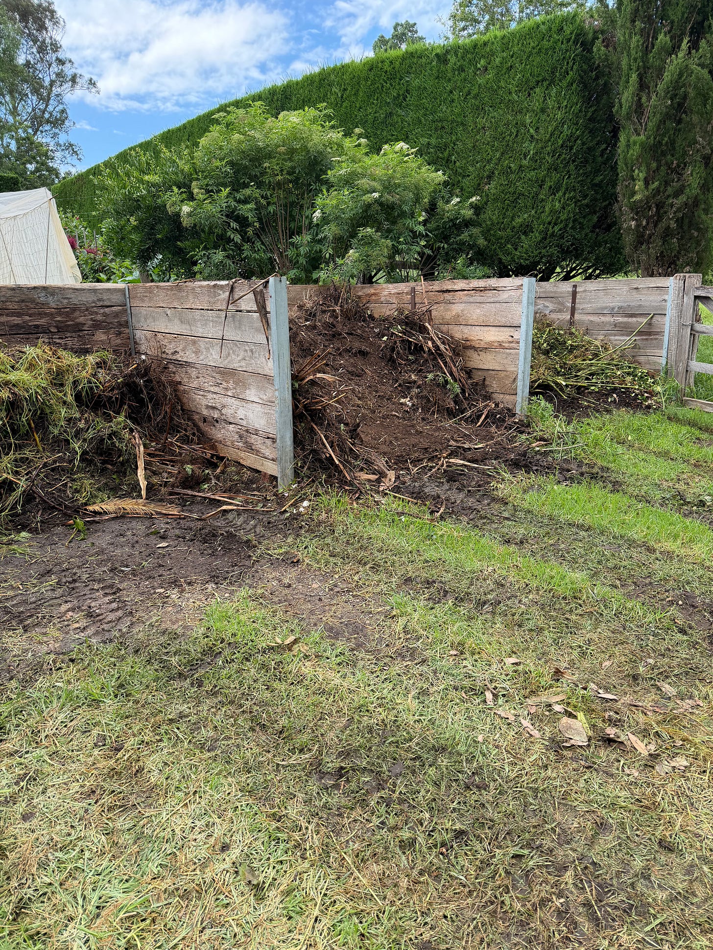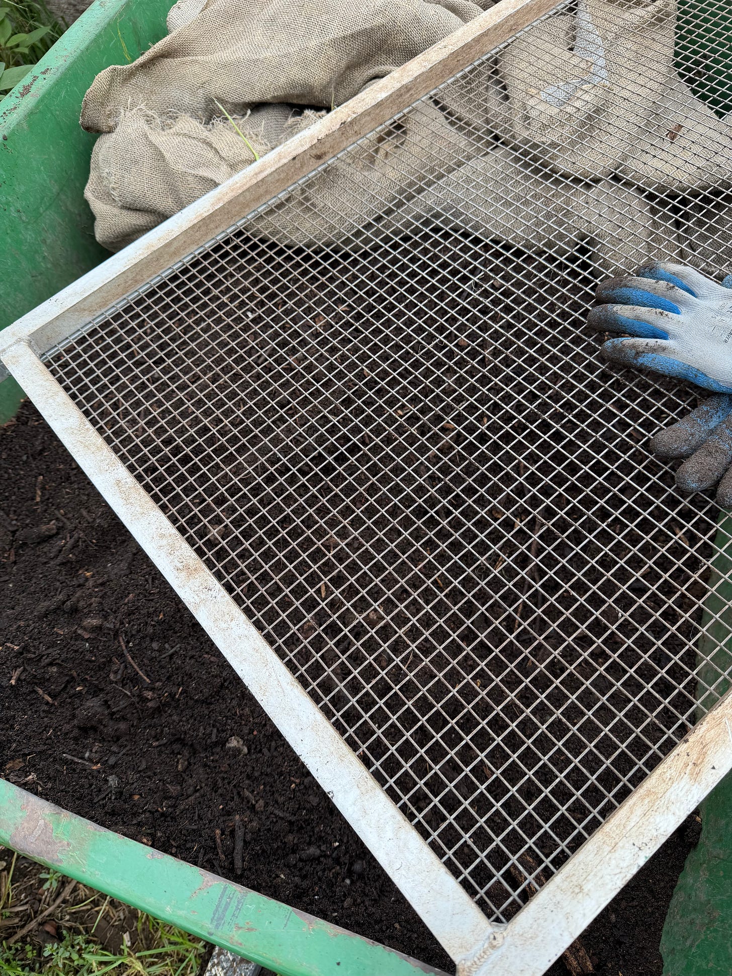 To get it to that point, I run it through a wire panel…like a sieve, to remove any larger, twiggy material, for we put pretty much everything into our compost, and some of the thicker pieces don’t break down as quickly as others - it’s all in there - from the strappy to the feathery, the substantial to the flimsy. Anything that hasn’t broken down, just rejoins the next heap on the go…it will break down eventually.