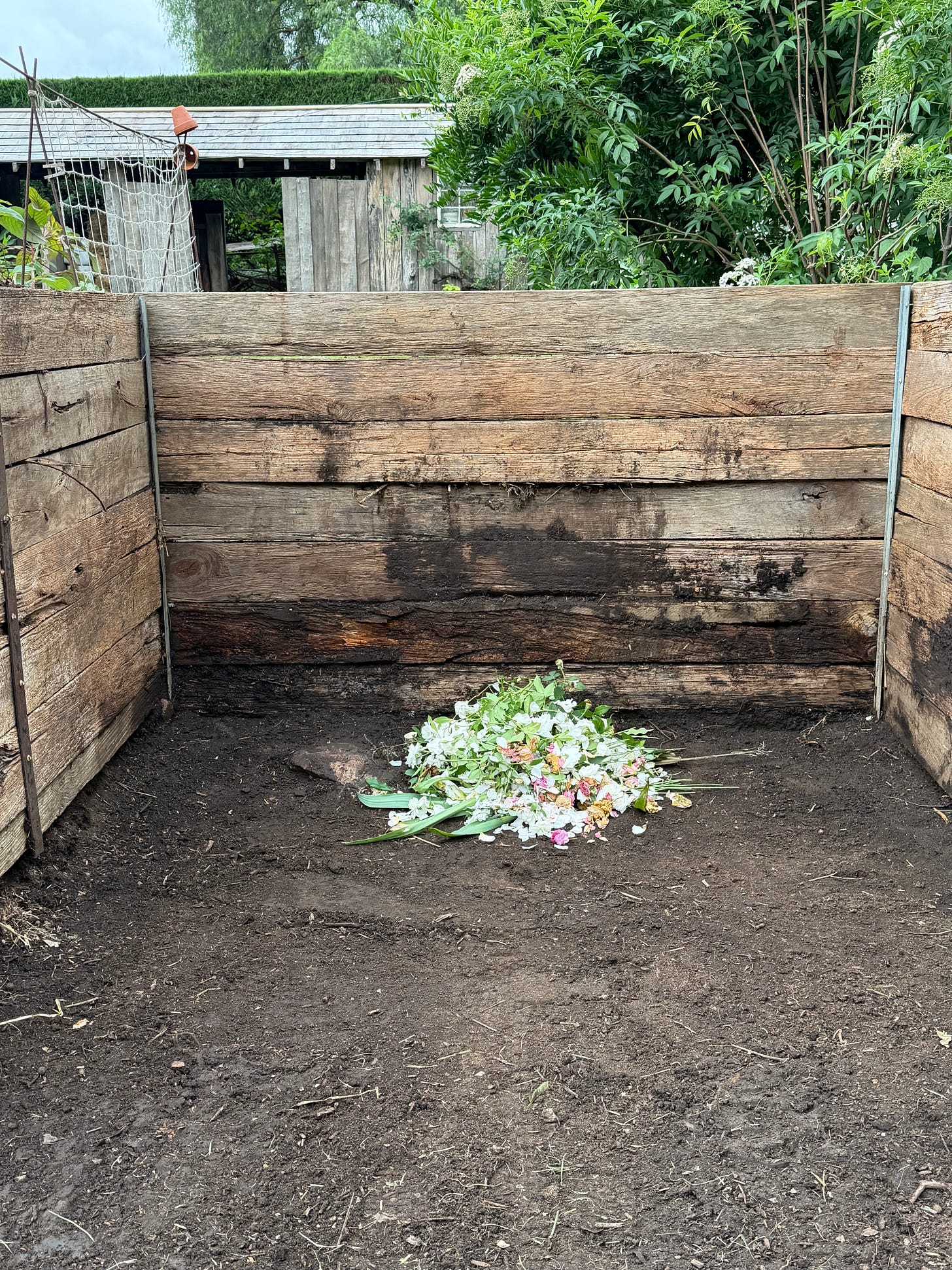 And so it is that…every six weeks or so, we ‘turn the compost’. During the intervening weeks, it’s inevitable material from all over the garden will accumulate - a handful here, a barrow load there; and at some point, we (well…I!) will deem it to have reached the turning point. The heap you see in the top image will have no more fresh material added…it’s already made up of a heap once turned as well as new material. It will be turned a couple more times before it’s ready to use. In the meantime, we emptied the bay from where I’ve been using the last of the compost from the previous batch into the mower trailer…from where I’ve been taking buckets as I begin the process of crop rotation in the kitchen garden…and turned the most recent heap for its last time, into the bay that’s always the final resting place…the one from where we know we can always find all the compost we need…beautiful and black as 90% cocoa!